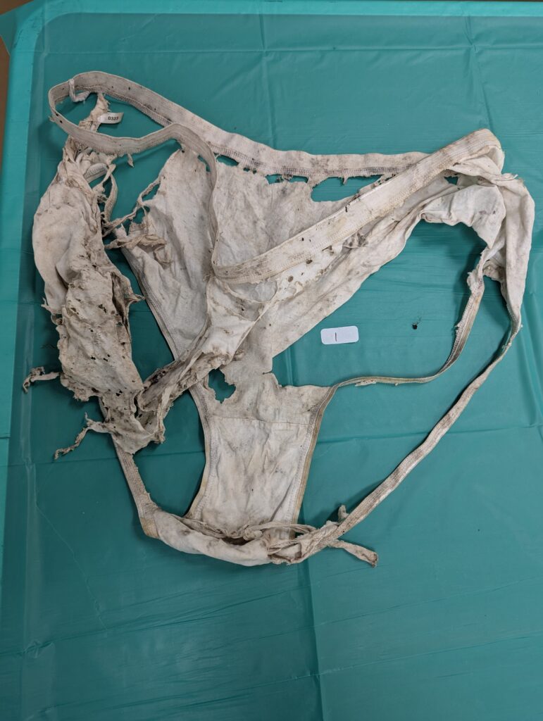 Once removed from the soil, the underwear shows how much insect and microbial activity has taken place, showing the health of your soil. Here are results from some club members.